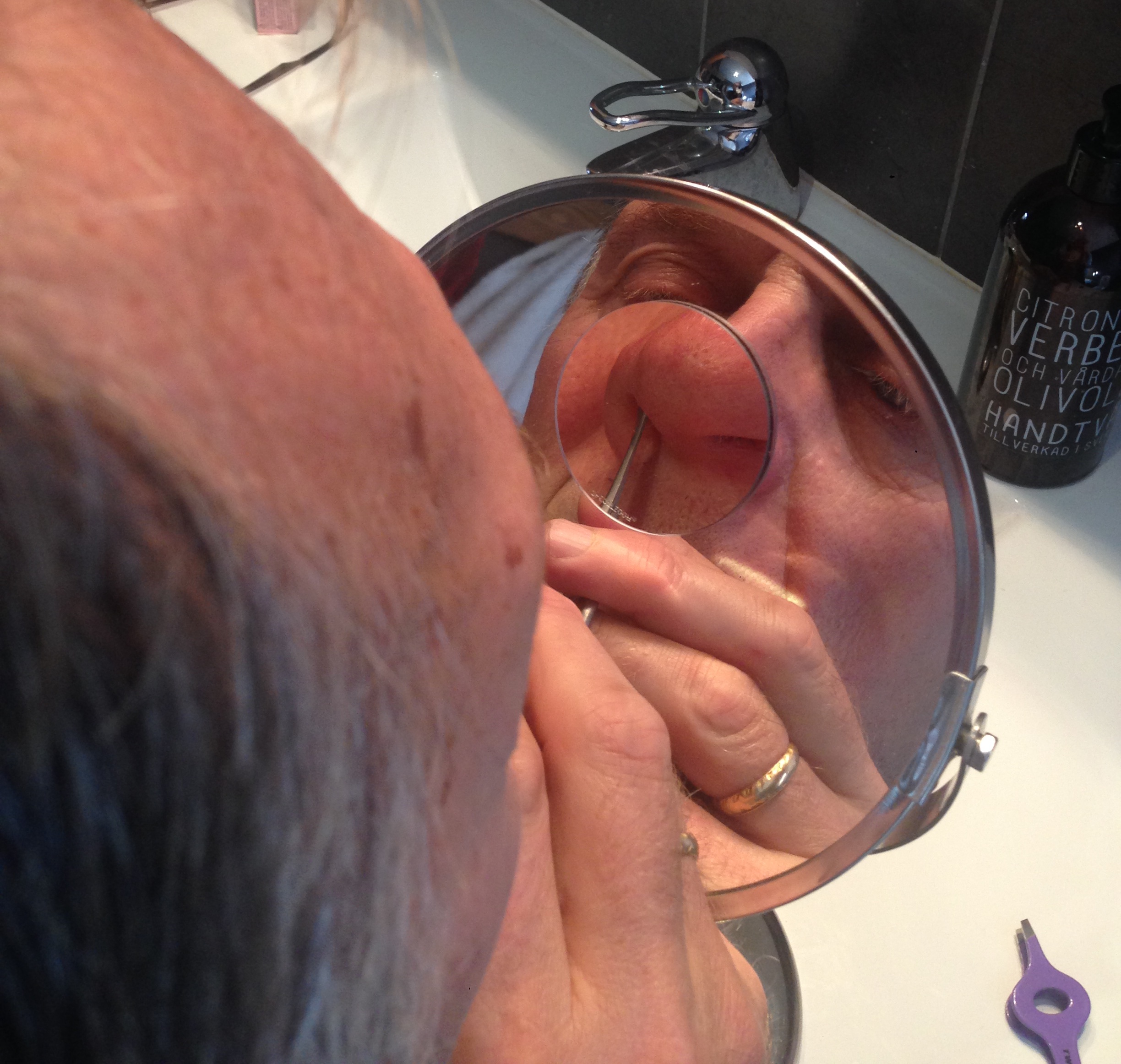 1. Du står alltid framför din vanliga badrumsvägg- /skåpspegel:
