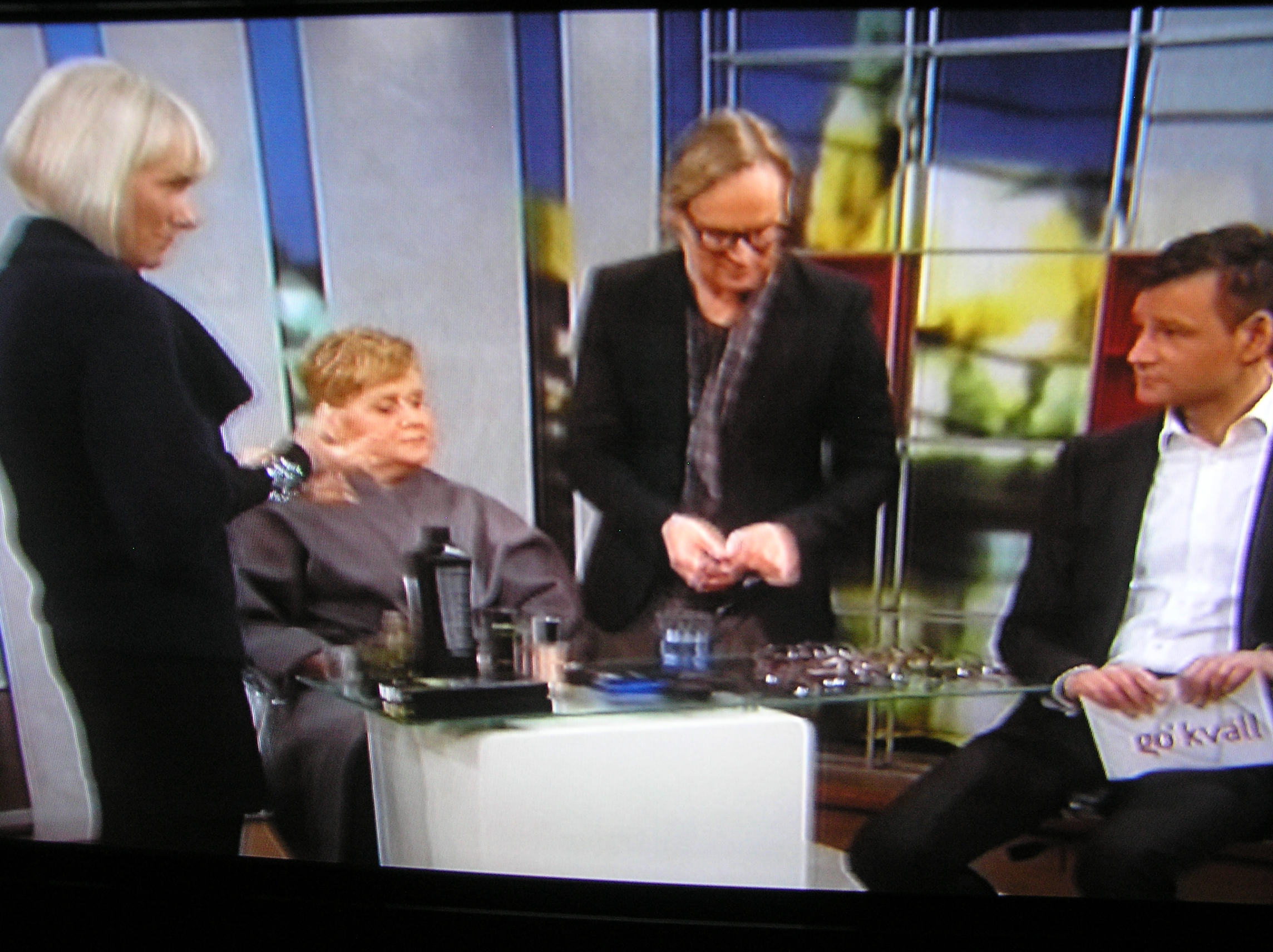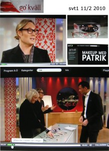 Go’ kväll den 11 februari 2010: ”…När man har glasögon och ska sminka sig, vilket jag tycker är viktigt, det ska alla göra, och när man inte ser så bra – då finns det som en lins man kan sätta på sin badrumsspegel eller ha med i necessären…”
